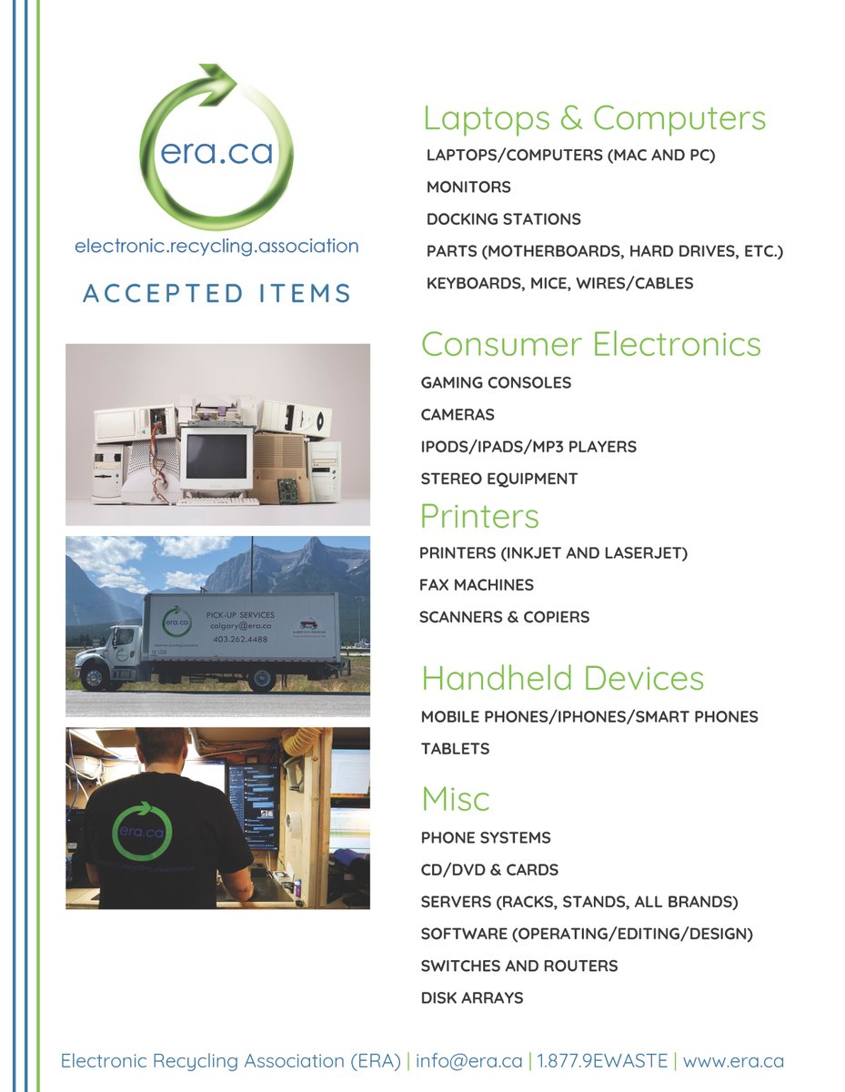 We recycle Electronics from Edmonton and Northern Alberta. We have Pick Up or Drop off services. The Recycling Council of Alberta RCA is a not-for-profit non-political charitable organization formed in 1987.